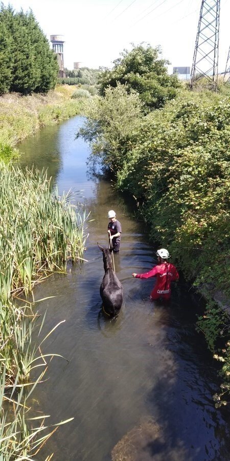 Los bomberos rescatan a un burro herido atrapado en el río en Bolmir