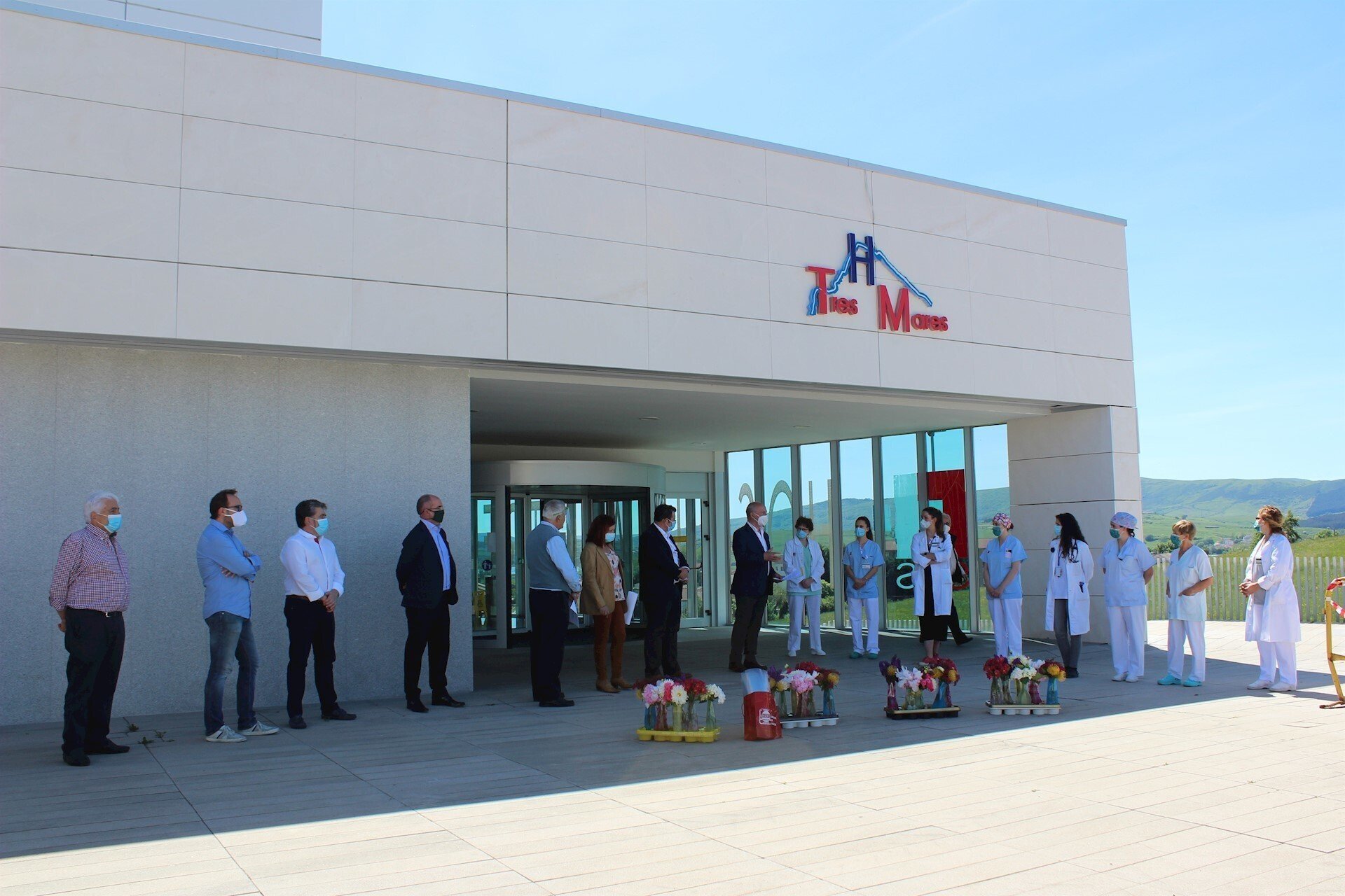 Homenajean con flores a la plantilla del Hospital Tres Mares de Reinosa