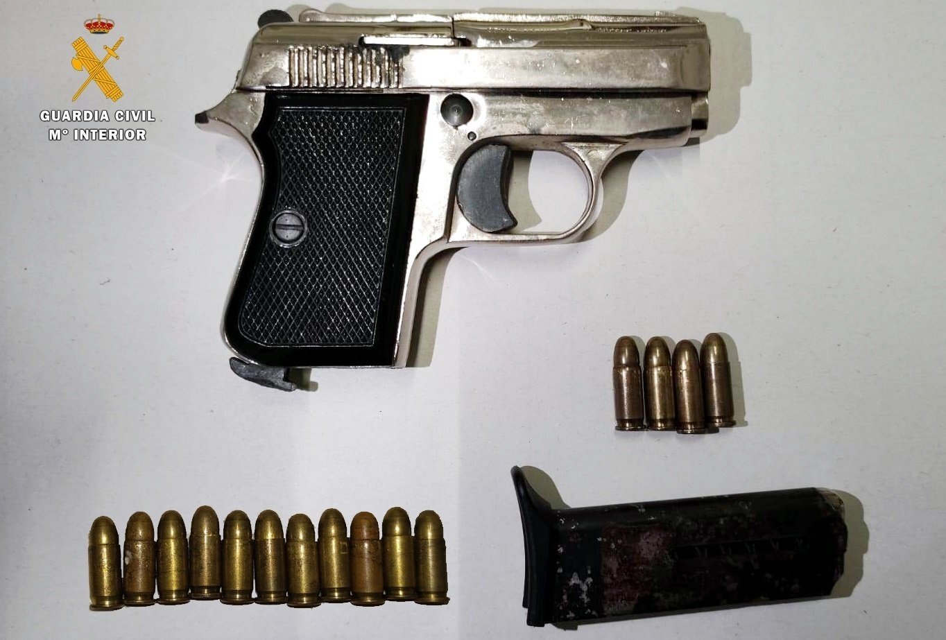 La Guardia Civil ha detenido a un vecino de Reinosa de 36 años al que se le intervino una pistola del calibre 6,35 milímetros preparada para hacer fuego, así como 15 cartuchos escondidos bajo el asiento de su coche. Además, el hombre dio positivo en alcohol y drogas.