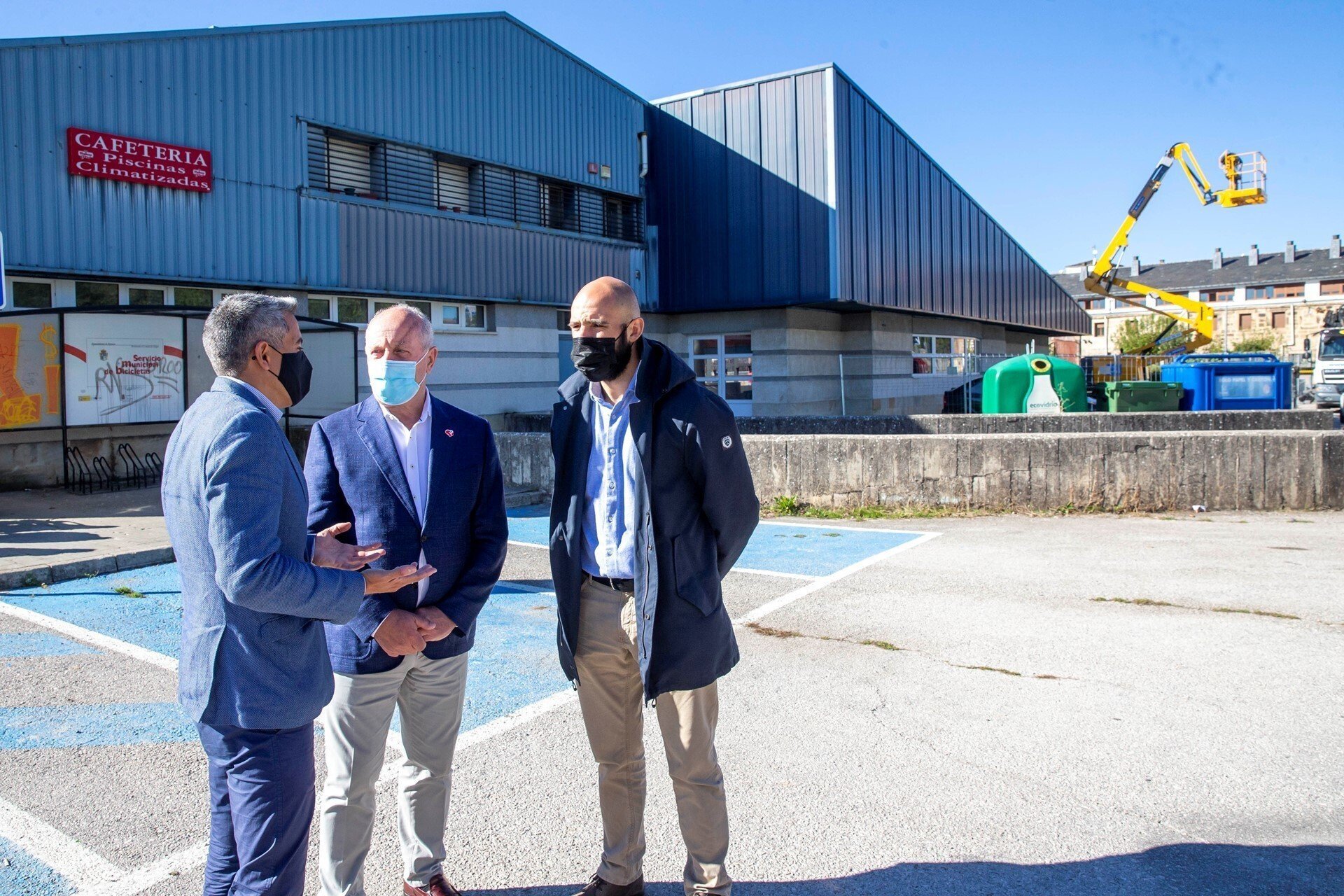 Tras la firma del convenio, el vicepresidente y el alcalde, acompañados por el director general de Deporte, Mario Iglesias, se han trasladado hasta la piscina municipal para conocer la evolución de los trabajos de reparación.