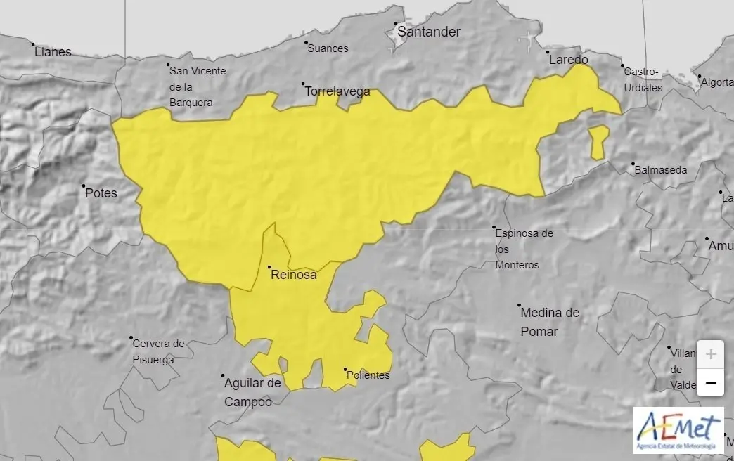 La zona de Cantabria del Ebro, el centro y el Valle de Villaverde estarán esta noche en aviso amarillo por bajas temperaturas, ya que se esperan mínimas por debajo de los -6 grados.