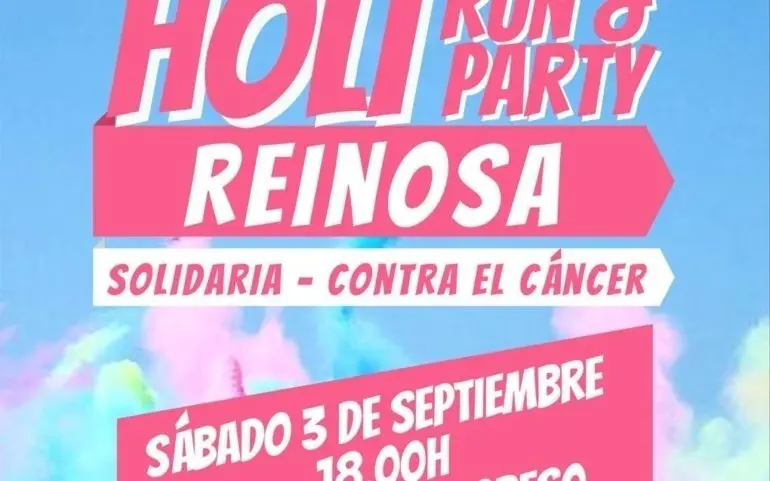 La Holi Run&Party contra el Cáncer que organizan el Ayuntamiento de Reinosa y la Federación de Peñas de la ciudad se celebrará el sábado 3 de septiembre y la recaudación se destinará a la Asociación Española contra el Cáncer.
