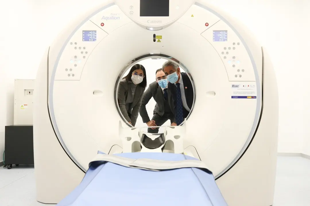Se trata de una unidad de diagnóstico TC (Tomografía Computarizada) que incorpora la tecnología más avanzada para tomografía de cuerpo completo por medio de escáner de rayos X y que ha sido financiada por el Ministerio de Sanidad, en el marco del Plan de Inversión de Alta Tecnología (INVEAT), a través de los fondos Next Generation.