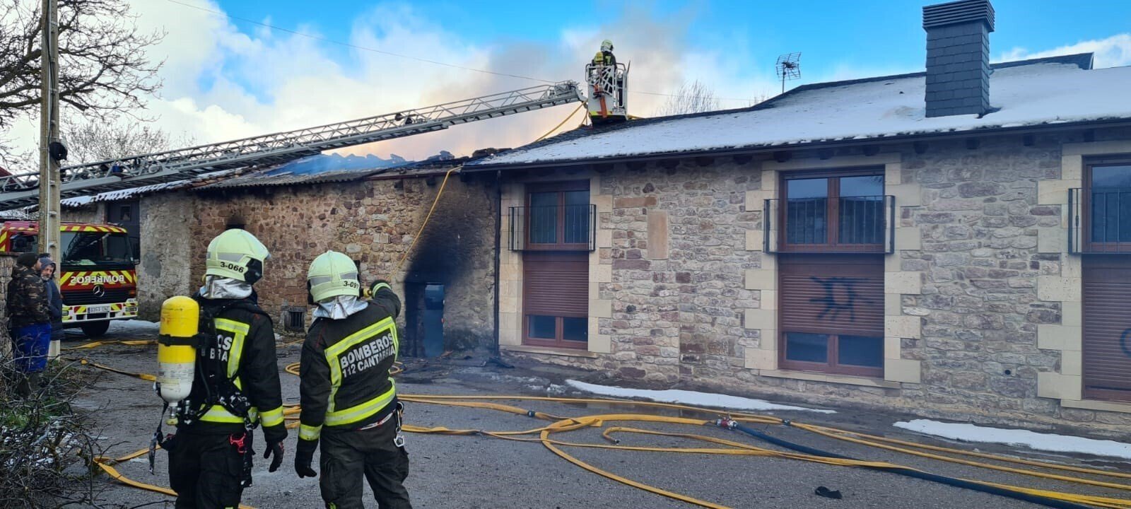 Un incendio calcinó en la tarde ayer una casa y un pajar en la localidad de Naveda, perteneciente al municipio de Campoo de Suso, donde acudieron dos dotaciones de bomberos del 112 que consiguieron salvar las edificaciones anexas, una vivienda y una cuadra.