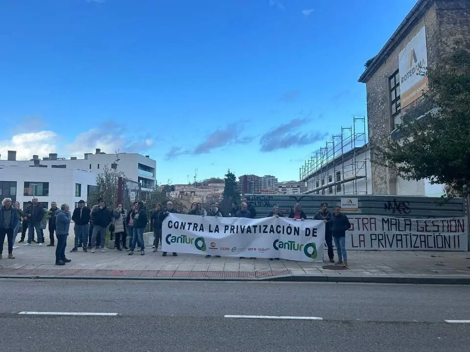 Con motivo de este debate, decenas de trabajadores de Cantur se han manifestado a las puertas del Parlamento, y han portado pancartas en las que se podían leer 'Contra la privatización de Cantur', 'Buruaga escucha, Cantur está en lucha' o 'El dinero de la nieve que nadie de fuera se lo lleve'.