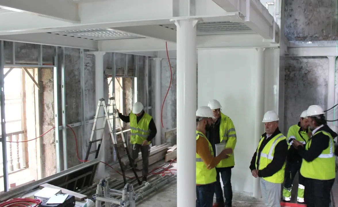 Así lo ha afirmado el alcalde, José Miguel Barrio, quien ha visitado junto a los concejales Álvaro Zabalía y Daniel Santos el lugar donde se están llevando a cabo las actuaciones, que actualmente se están centrando en el interior del edificio, aunque también incluyen la finalización de la fachada exterior y la colocación de los antiguos casetones de la cubierta.
