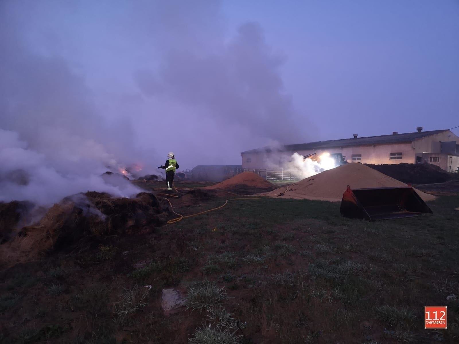 No se han registrado heridos ni tampoco pérdida de ganado, que se encuentra en una zona segura, pero el fuego ha calcinado cerca de 400 rollos de hierba y 10 metros cúbicos de forraje.