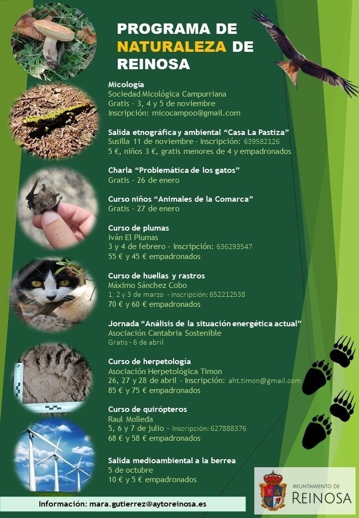 El programa de actividades se cerrará el 5 de octubre con una salida ambiental a la berrea. Su coste será de 10 euros para no empadronados y de 5 euros para quien si lo esté. Aquellas personas que deseen obtener mas información pueden dirigirse a la dirección de correo electrónico mara.gutierrez@aytoreinosa.es