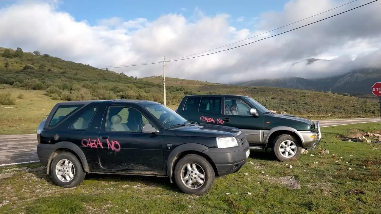 Los vehículos de algunos cazadores que participaban en una batida de caza mayor en Alto Campoo el pasado domingo 22 de septiembre, fueron rociados con pintura con la frase "Caza no", hecho que ha sido denunciado a la Guardia Civil.