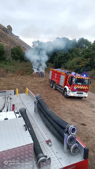 Bomberos del Gobierno de Cantabria han sofocado este jueves el incendio de dos rollos de hierba que ardían en Campoo.
