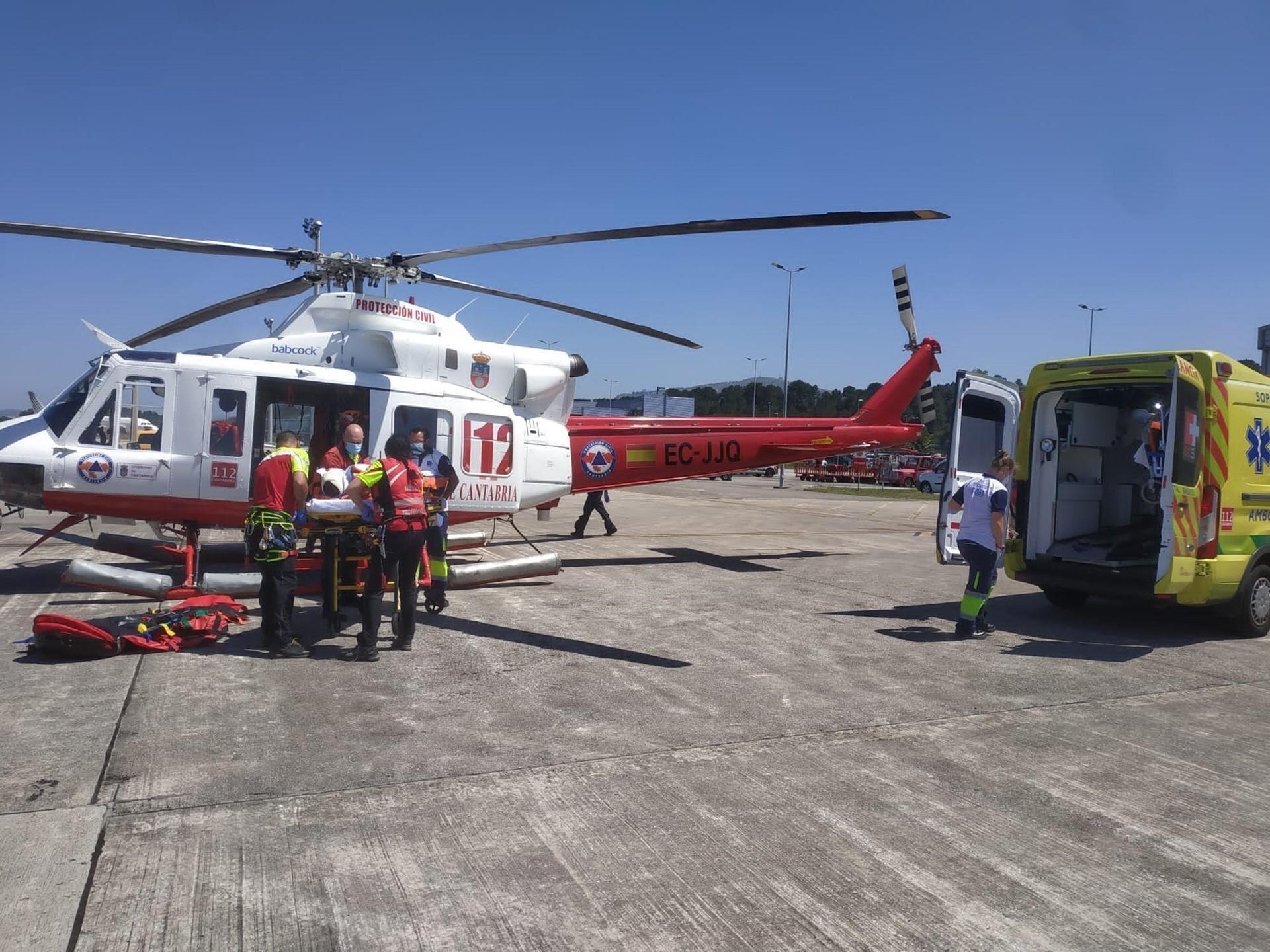 Una vez estabilizado, ha sido trasladado al helicóptero del Gobierno de Cantabria para su evacuación de urgencia al aeropuerto Seve Ballesteros, donde esperaba un equipo del 061 que a su vez lo trasladó en ambulancia hasta el Hospital Valdecilla.
