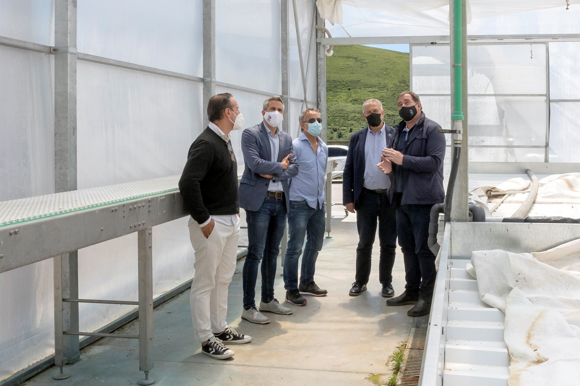Durante la visita a los invernaderos, Zuloaga ha estado acompañado por el alcalde de San Miguel de Aguayo, Eduardo Gutiérrez, y por responsables de la empresa que va a sumir la explotación.