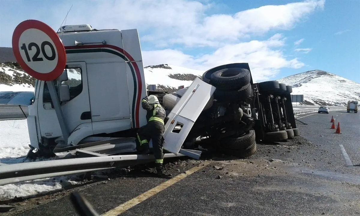 Debido al accidente, permanece cortada esa zona de la autovía a la espera de la retirada del camión.