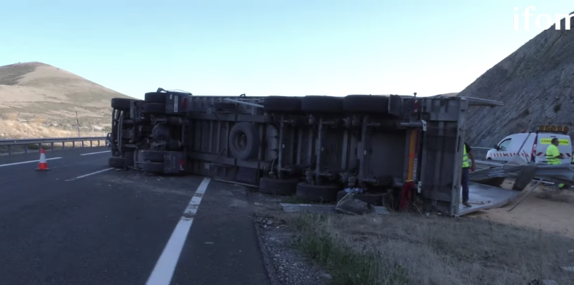 La autovía A67 sentido Santander se encuentra en corte total, comienzan los trabajos de retirada del camión volcado tras el accidente del que informábamos esta tarde.