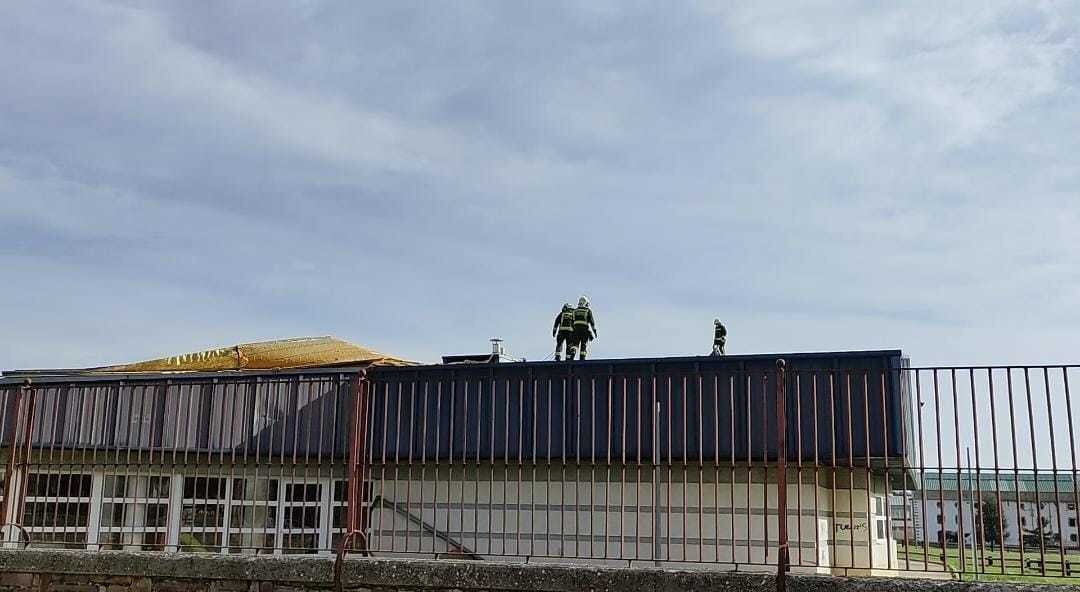 Destrozos por el viento en la cubierta de las piscinas climatizadas de Reinosa