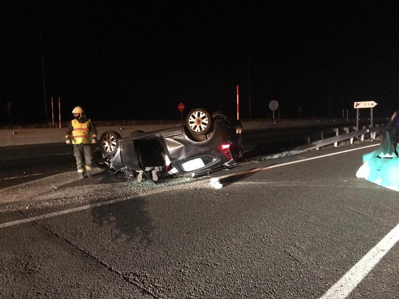Dos heridos y un vehículo volcado en la A67 a su paso por Pesquera