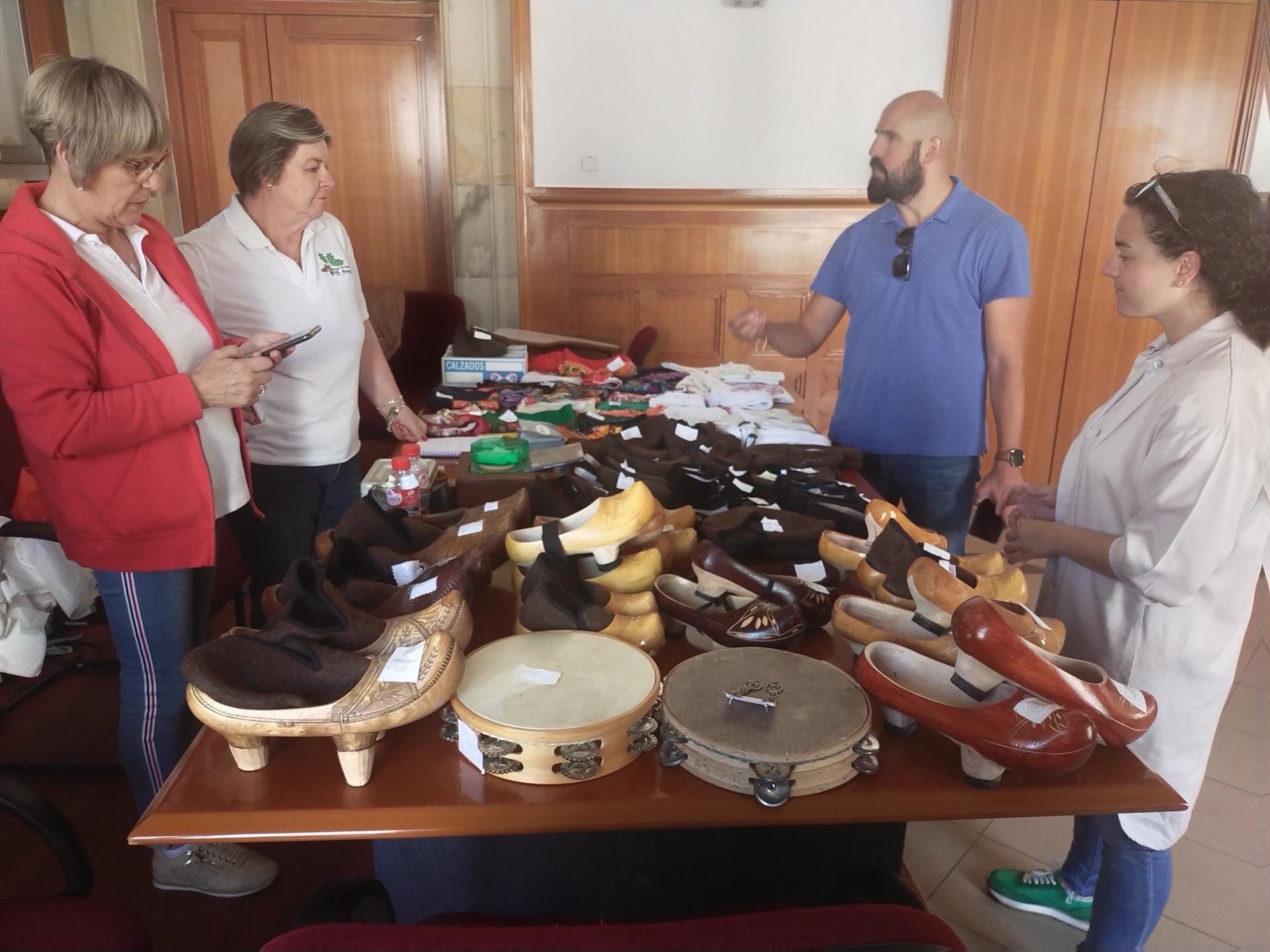 Hay trajes de caballero, de chica y como anécdota, el más pequeño para un bebé de un mes. Albarcas, escarpines, pañuelos, y la ropa que se luce el Día de Campoo. Agradecidas al Ayuntamiento que ha cedido el local, en la Casona de Reinosa.