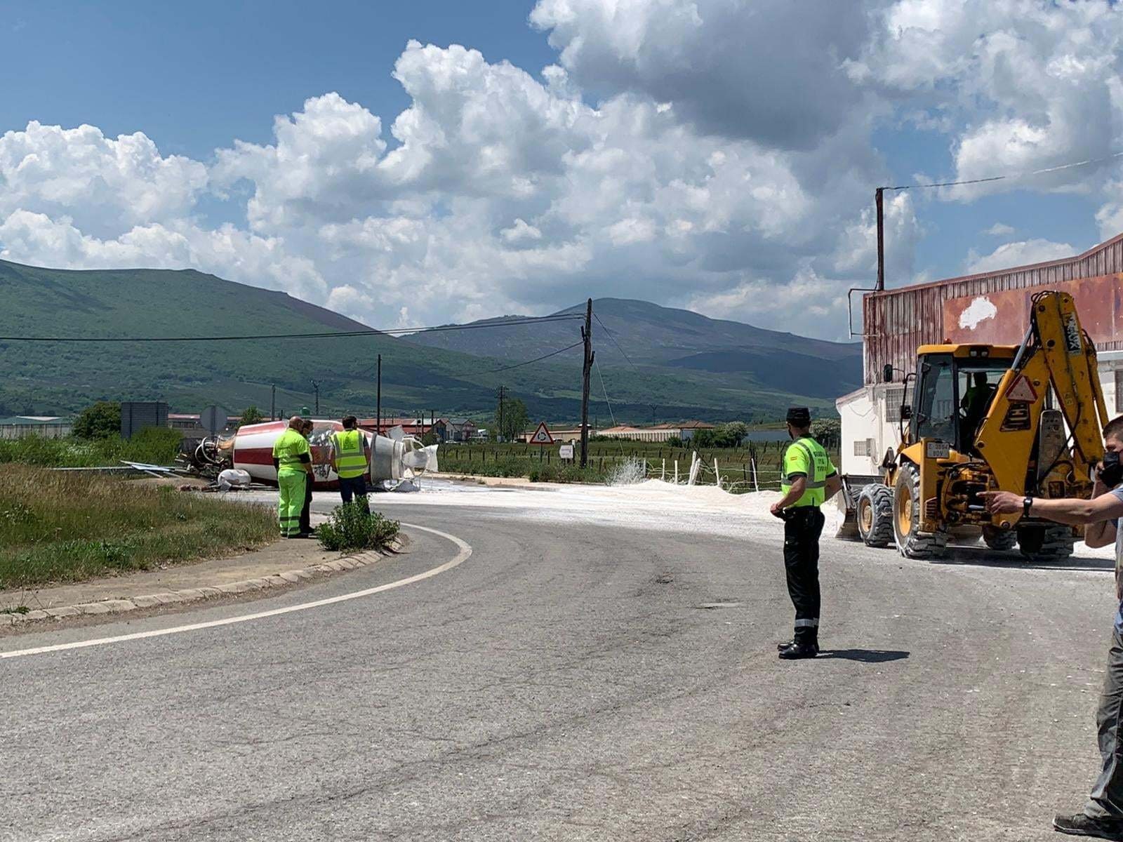 Vuelca un camión hormigonera en la N-611 a su paso por Matamorosa
