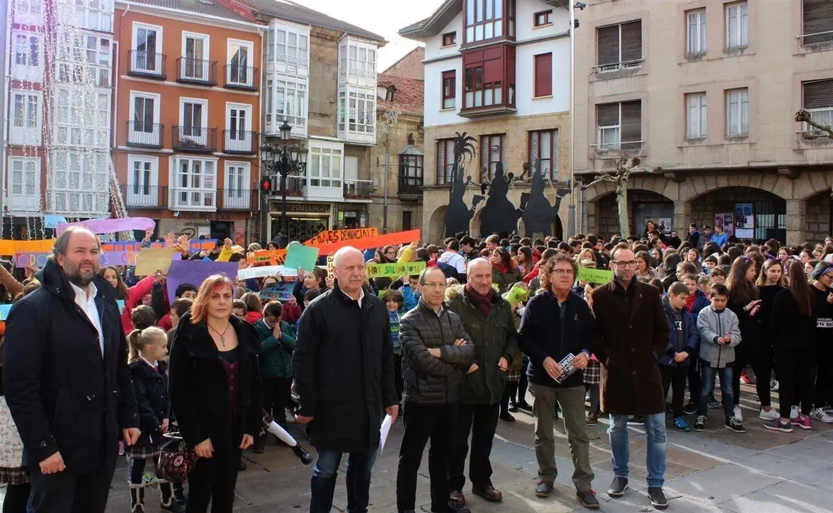 Los escolares de Reinosa se han sumado a la Corporación municipal y al resto de reinosanos al acto convocado hoy por el Consistorio con motivo de la reciente conmemoración del Día Internacional contra la Violencia de Género.