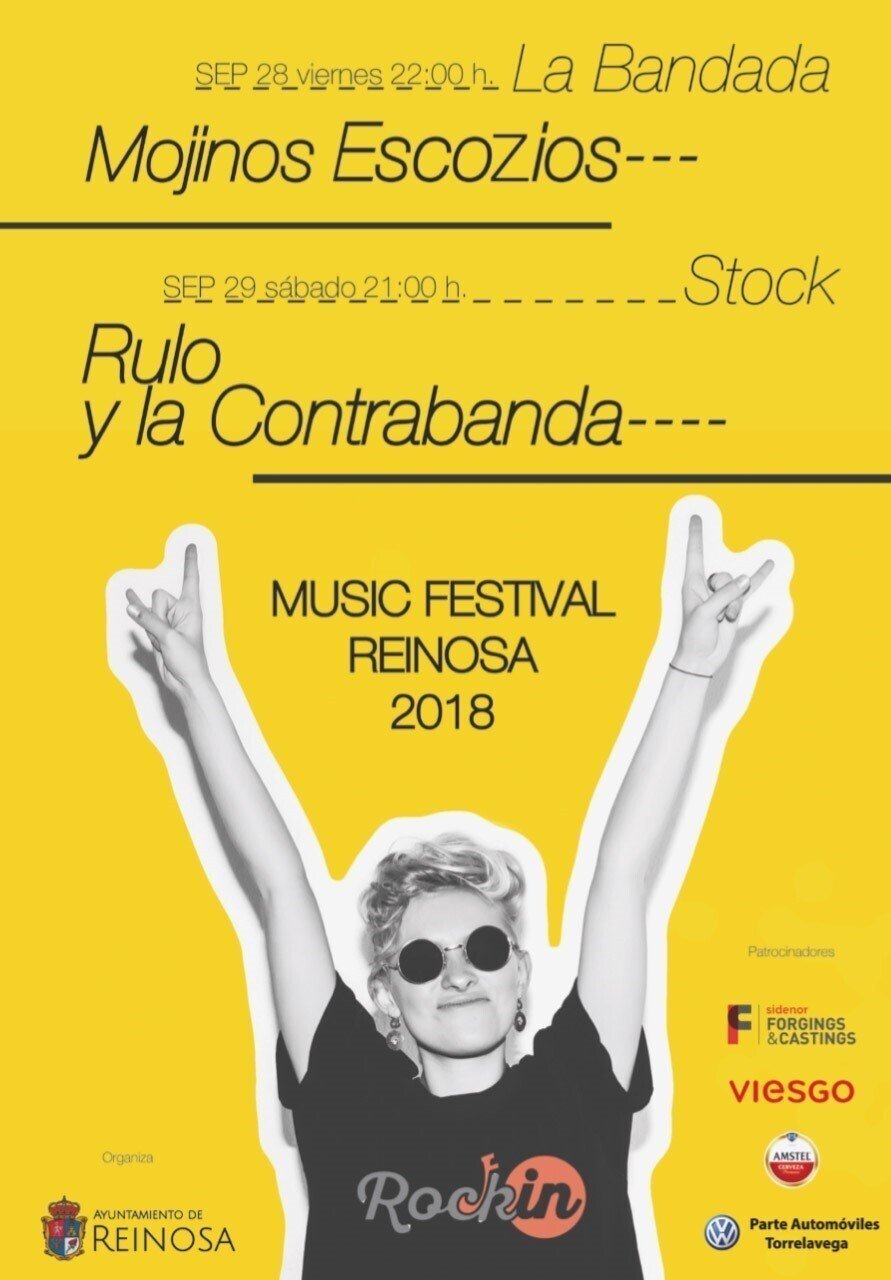 El festival Rockin 2018 de Reinosa, organizado en el marco de las fiestas de San Mateo, arrancará este viernes, 28 de septiembre, a partir de las 22.00 horas, en la Campa de los Obeso de la mano de Los Mojinos Escozíos y de La Bandada y tendrá como cabeza de cartel a Rulo, que actuará el sábado.