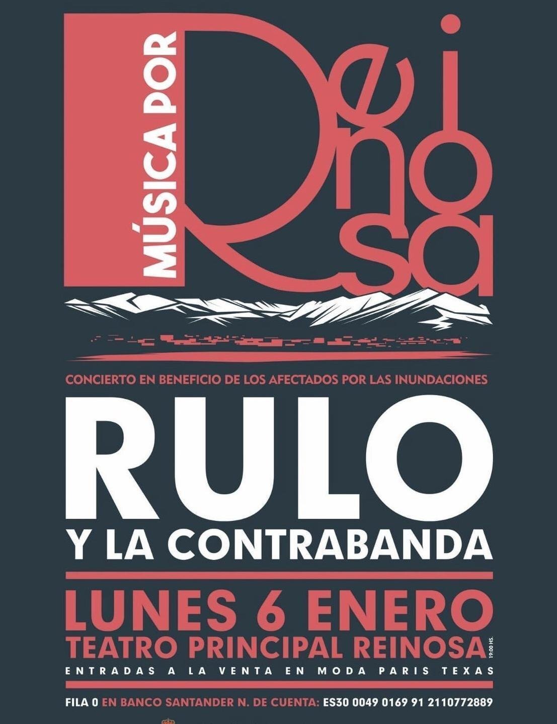 El cantante reinosano Rulo ofrecerá un concierto el próximo lunes 6 de Enero a beneficio de los afectados por las inundaciones del pasado día 19 de este mes.