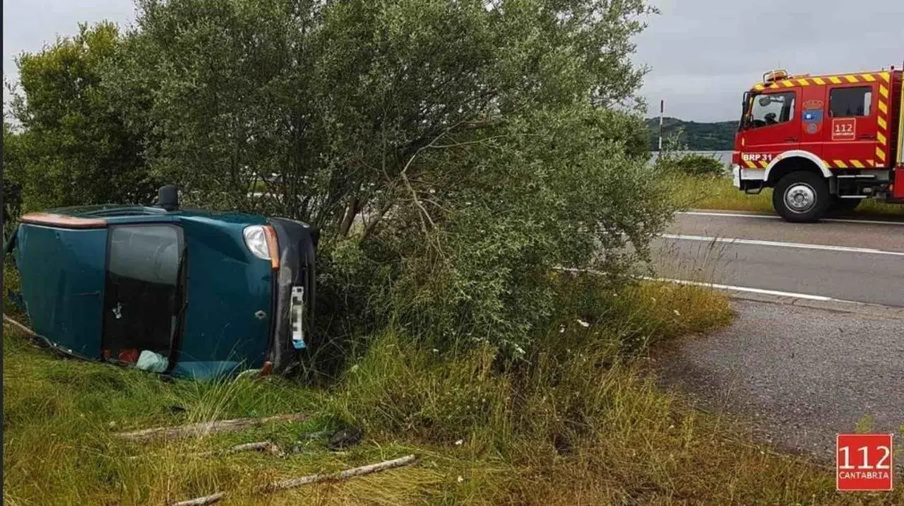 Intervienen bomberos 112 Cantabria, Guardia Cvil y 061 Cantabria que atiende y traslada al único ocupante del vehículo, una mujer, que ha sido trasladada al Hospital Tres Mares para un chequeo preventivo. Abandonaba el vehículo por sus propios medios.