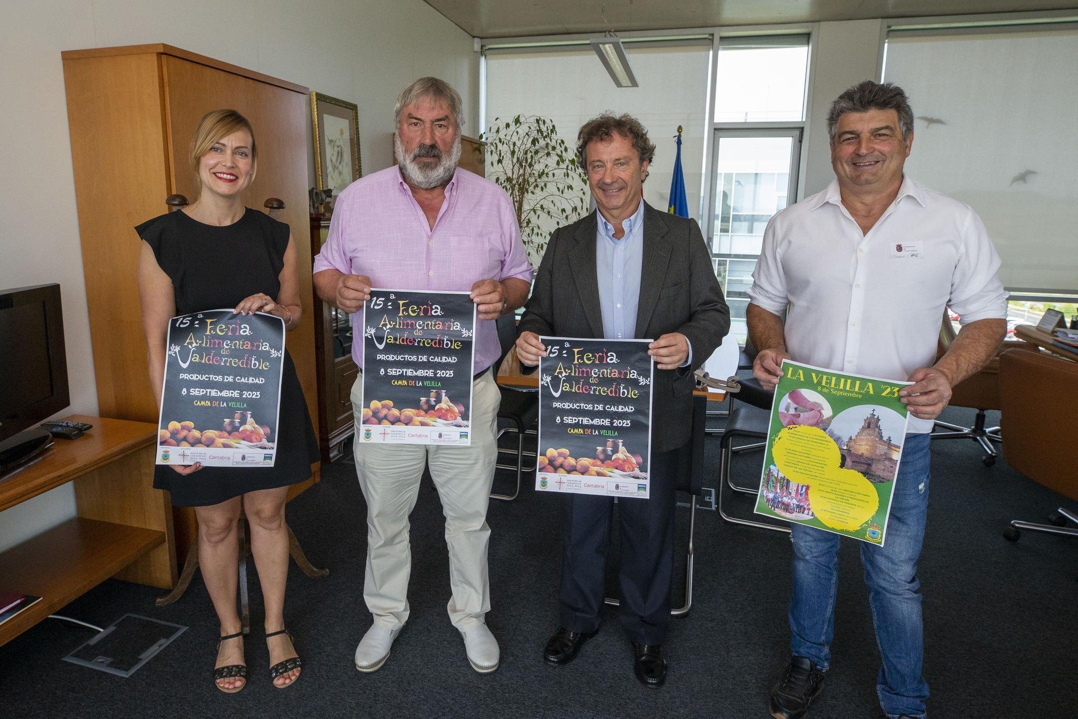 La XV Feria Alimentaria de Valderredible reunirá el próximo viernes, 8 de septiembre, a más de 70 productores artesanales y alimentarios en la campa de La Velilla para dar a conocer sus productos y poner en valor la excelente calidad de los alimentos de Cantabria. Así lo han anunciado el consejero de Desarrollo Rural, Ganadería, Pesca y Alimentación, Pablo Palencia, y el alcalde de Valderredible, Fernando Fernández, durante la presentación del cartel.