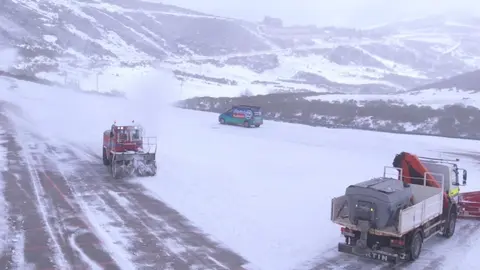 08:50horas: Reabre la subida a Alto Campoo, abierta pero en nivel rojo, obligatorio neumáticos de invierno o cadenas.