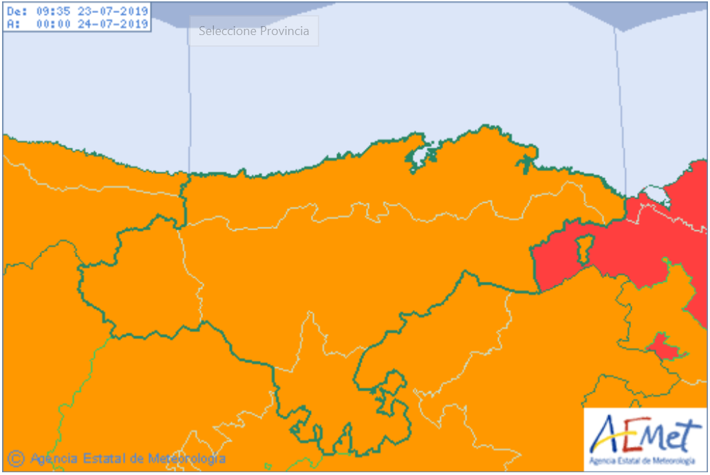 Esta situación, decretada por Agencia Estatal de Meteorología (AEMET), se mantendrá activada en este nivel desde las 14:00 horas de hoy martes hasta las 22:00 horas. Se espera que localmente vayan acompañadas de rachas de viento fuertes o muy fuertes y/o granizo grande.