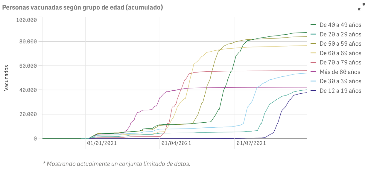 El número total de personas vacunadas con una dosis asciende a 477.928 (+78), lo que significa el 82% de la población de la región y el número total de personas vacunadas con pauta completa asciende a 467.247 (+47) , lo que significa el 80.2% de la población de la región.