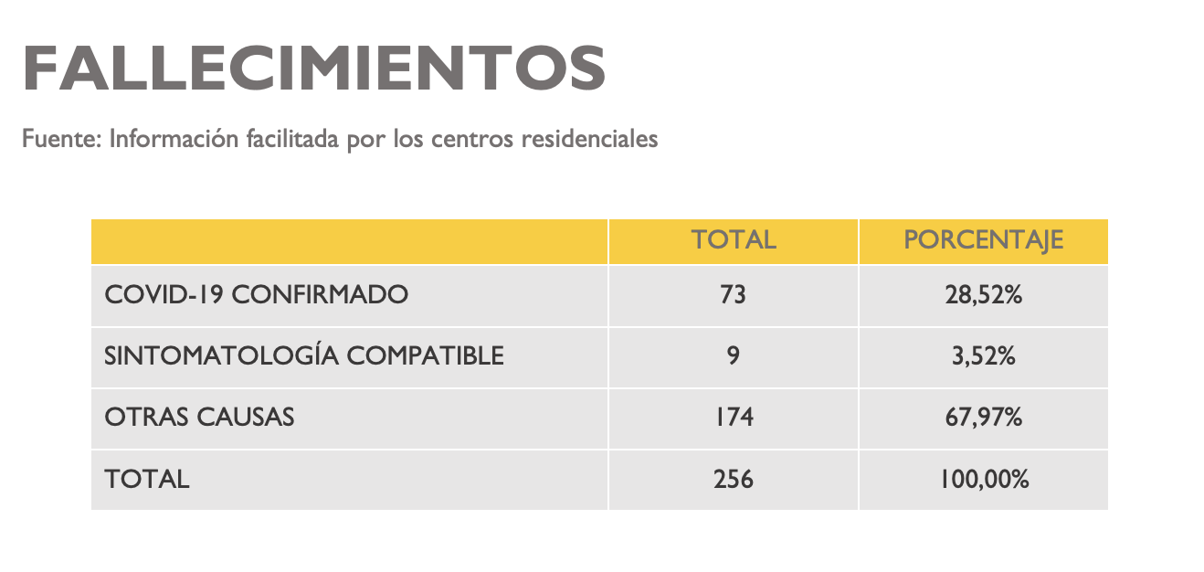De los 256 fallecidos en residencias y centros de atención especial desde que comenzara el estado de alarma, 73, han fallecido con coronavirus, 9 con síntomas y 174 por otras causas según el informe que os dejamos detallado a continuación con fecha 16 de abril.