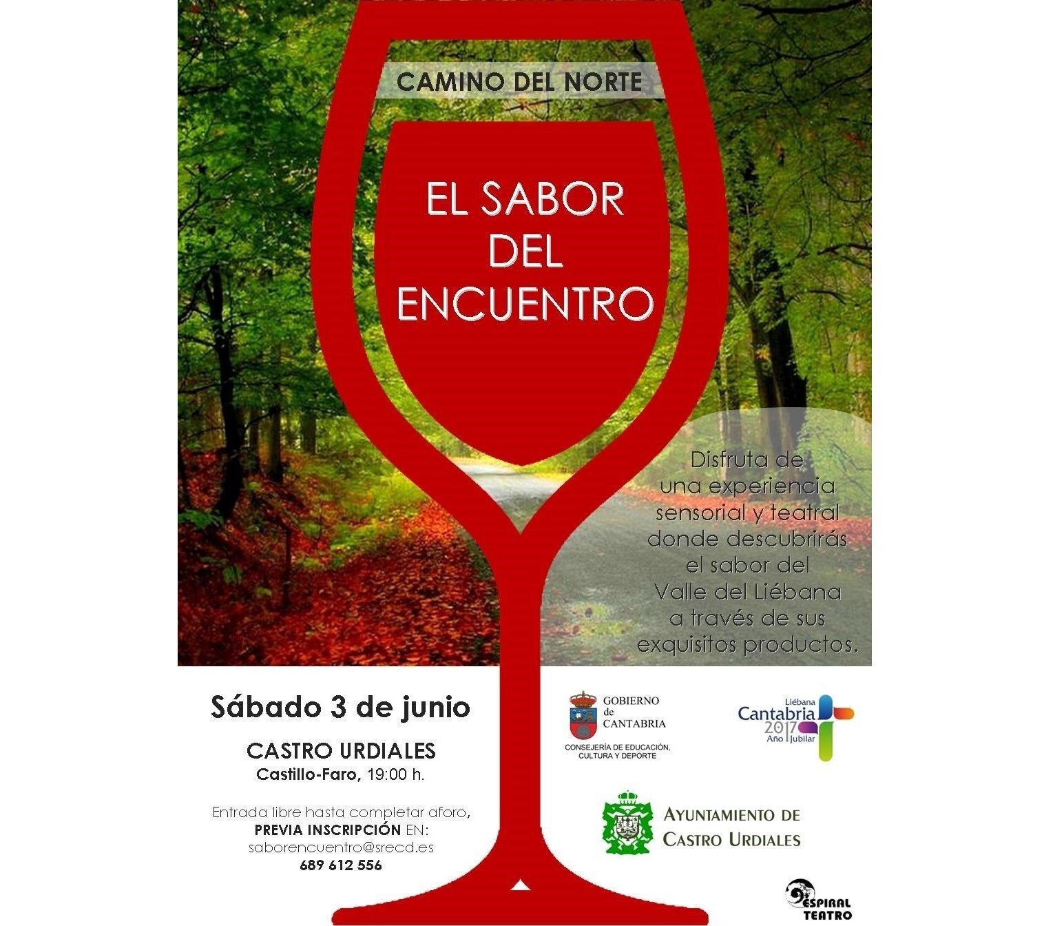 Se trata de una iniciativa innovadora a cargo de la compañía madrileña Espiral Teatro, cuyos actores guiarán a 25 comensales por un viaje de sabores y sensaciones. La cita será a las 19 horas en la explanada entre la iglesia de Santa María y el Castillo-Faro, y en caso de inclemencias meteorológicas se trasladará al interior del Castillo-Faro. La inscripción es gratuita y se abre hoy, lunes, a través del correo electrónico saborencuentro@srecd.es o del teléfono 689 612 556 (Nerea Soto), hasta completar las 25 plazas disponibles. Los interesados deberán poner su nombre y apellidos, así como un teléfono de contacto. La experiencia 'El sabor del encuentro' pretende reforzar el conocimiento del Camino del Norte y de la zona de Liébana --sus pueblos, productos, cultura e historia-- a través de dinamizaciones gastronómicas, teatrales, musicales y poéticas que introducen al espectador en la acción de forma directa, siendo un espectáculo interactivo. Esta acción es la segunda de las propuestas culturales organizadas por la Dirección General de Cultura del Gobierno regional en Castro, como parte de los municipios que conforman el Camino del Norte. La primera es un concierto de órgano celebrado el pasado domingo, y las otras dos serán un concierto en julio y una conferencia divulgativa en agosto, sobre las raíces históricas, artísticas y culturales de las peregrinaciones en Cantabria, su huella en el territorio y una reflexión sobre su futuro.