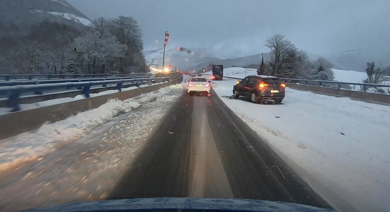 Cuatro accidentes en apenas un kilómetro de la A67 este viernes por las nevadas