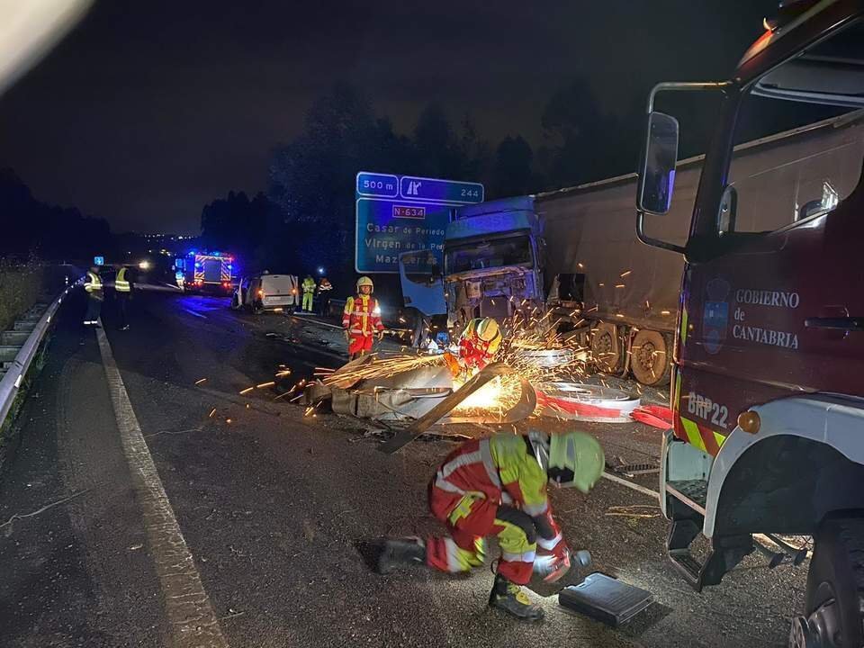 El incidente en concreto se produjo en el kilómetro 255 de la autovía A8 a su paso por la localidad de Cabezón de la Sal.Los bomberos del Gobierno de Cantabria tuvieron que trabajar para cortar y retirar las bobinas metálicas que obstaculizaban el paso en plena autovía.