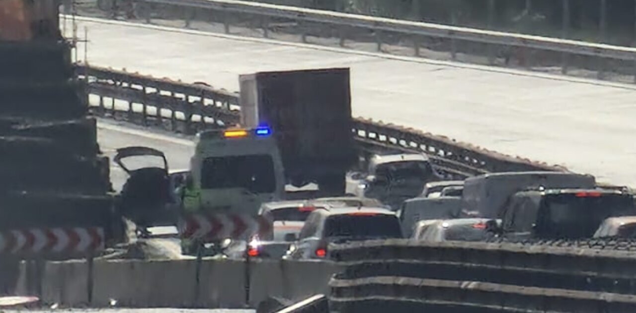 Un accidente en el tramo de obras de Barreda provoca el colapso de la A67 sentido Torrelavega