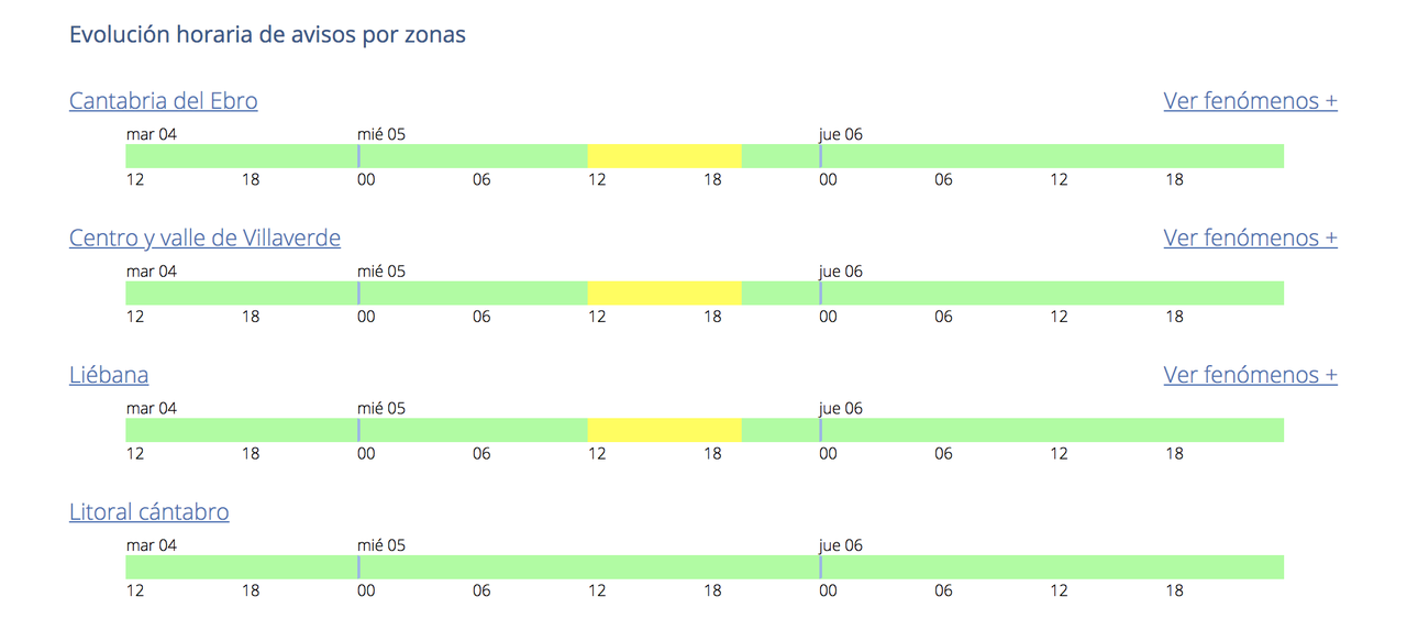 Liébana, Centro, Valle de Villaverde y Cantabria del Ebro: Aviso por lluvias de hasta 15mm por hora entre las 12:00horas y las 20:horas así como por tormentas localmente fuertes o muy fuertes.