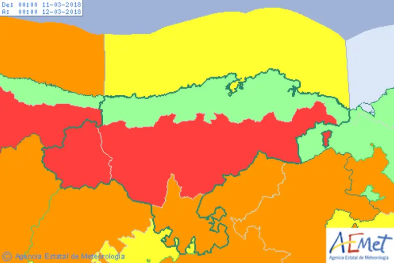 Antes y después de los niveles de riesgo rojo y naranja, estará vigente el aviso AMARILLO por el mismo fenómeno meteorológico.