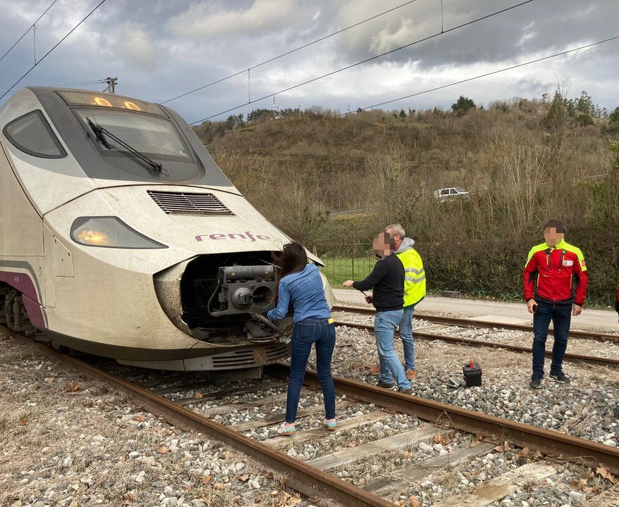 Según la información facilitada por la Delegación de Gobierno en Cantabria, el tren impactó contra unos troncos de un árbol caído, impactando levemente contra la parte delantera del tren.