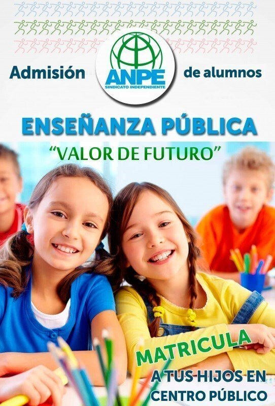 Como sindicato independiente, ANPE anima a las familias para que matriculen a sus hijos en centros públicos "al ser la enseñanza pública la única garante de la integración social y la igualdad de oportunidades y contar con los profesionales mejor formados".