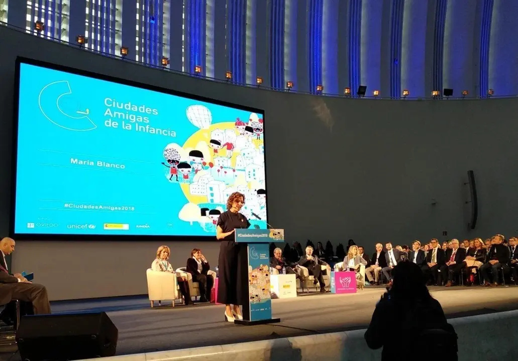 La consejera de Servicios y Derechos Sociales del Principado de Asturias, Pilar Varela, ha agradecido el esfuerzo de todos los municipios distinguidos como Ciudades Amigas de la Infancia para lograr el reconocimiento que este martes recogen. Pertenecer a esta red, ha dicho, "significa formar parte de una red preciosa, muy bonita", para que todas las administraciones, tanto municipales como regionales, cooperen y trabajen juntas.