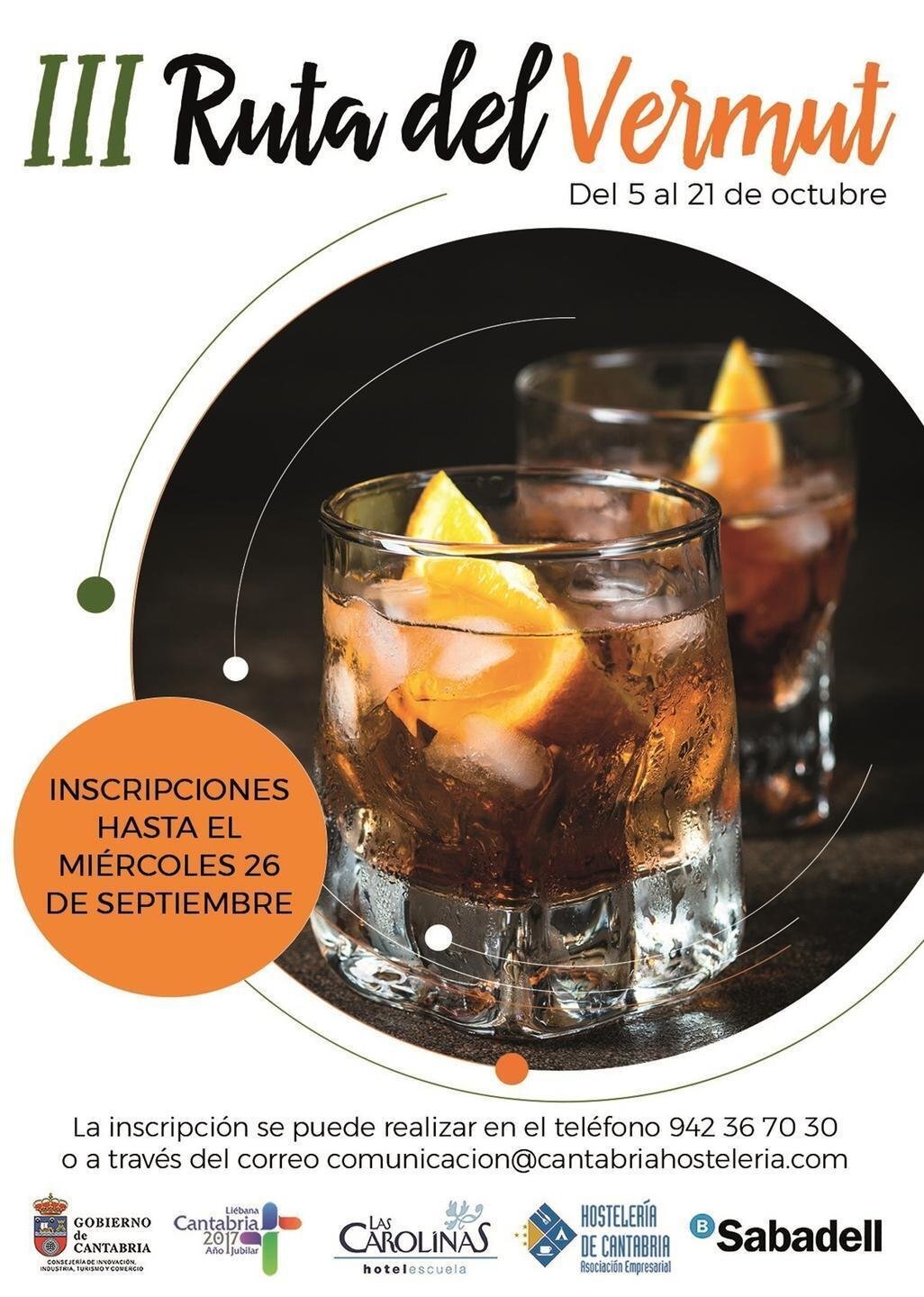 La III Ruta del Vermut de Cantabria se celebrará desde este viernes al 21 de octubre y la final en directo tendrá lugar el día 25 de este mismo mes en el Hotel Escuela Las Carolinas de Santander.