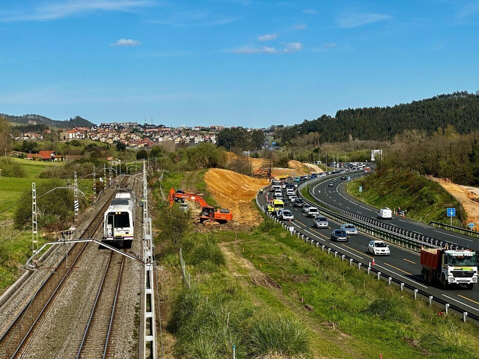 Precisamente, la presencia de los servicios de emergencia en la zona de obras de la curva de Mogro está generando retenciones en la autovía en sentido Torrelavega.