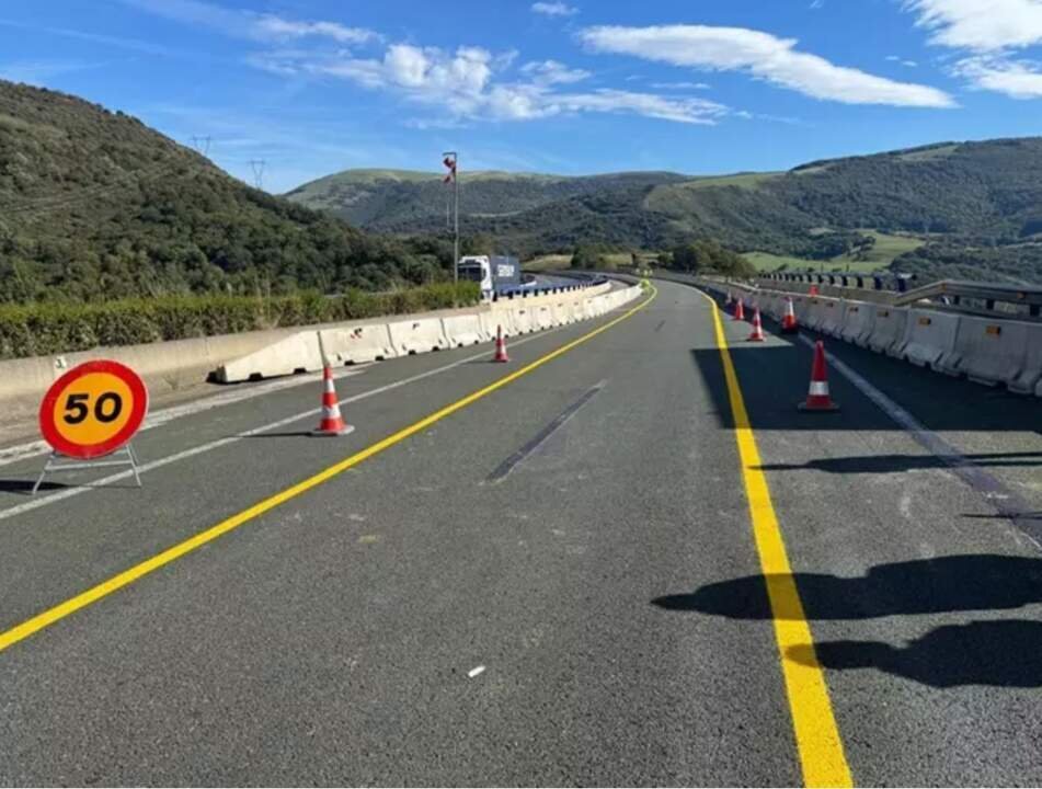 La autovía A67 a su paso por Lantueno lleva más de un mes con un solo carril y sin obras de reparación