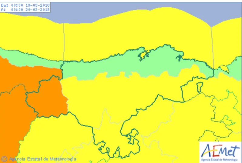Y desde las 6 a las 10 horas del lunes, Cantabria estará también en aviso amarillo por fenómenos costeros adversos, por la previsión de viento del oeste de fuerza 7.