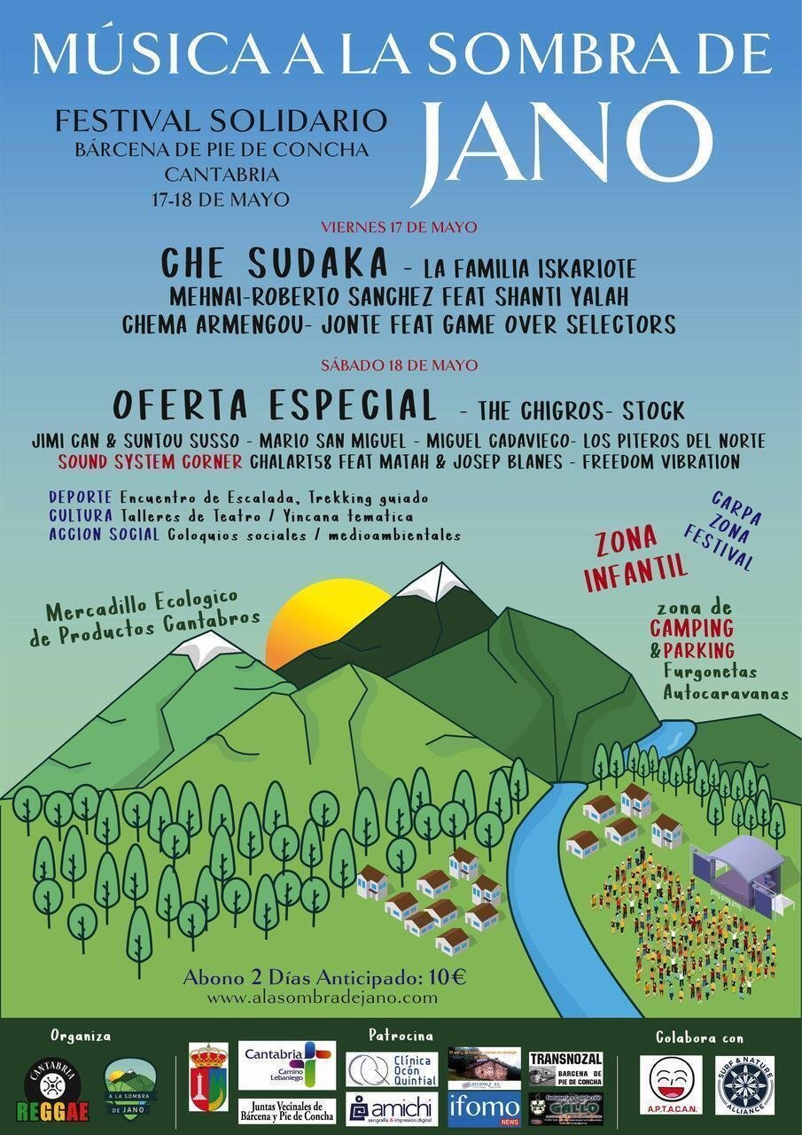 La asociación cultural “ a la sombra de Jano” organiza en la localidad de Barcena de Pie de concha la primera edición del festival, Música a la sombra de Jano. Para difundir valores sociales y festivos con varios puntos de actuación repartidos en todo el municipio y con carácter benéfico.