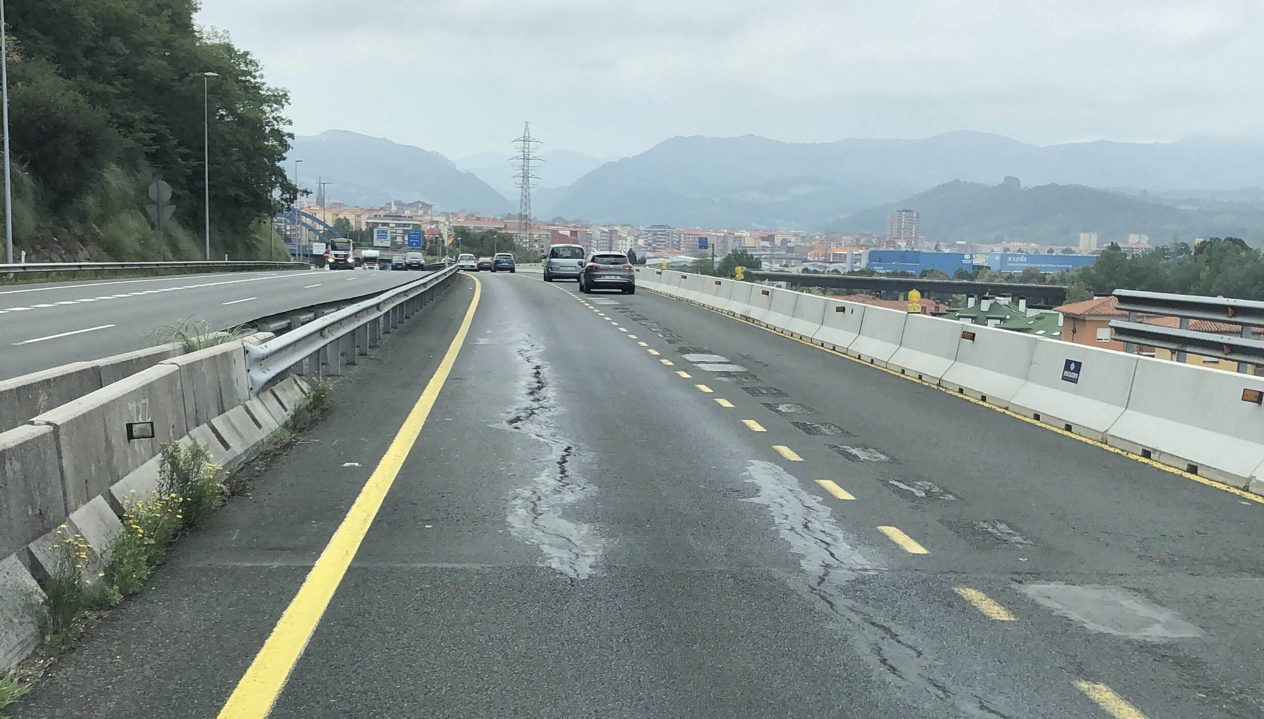 Una bolsa de agua debajo de los carriles, en la llegada de la autovía a Torrelavega, es el origen de la nueva grieta, que se encuentra unos metros antes del lugar donde ocurrió el argayo hace unas semanas.