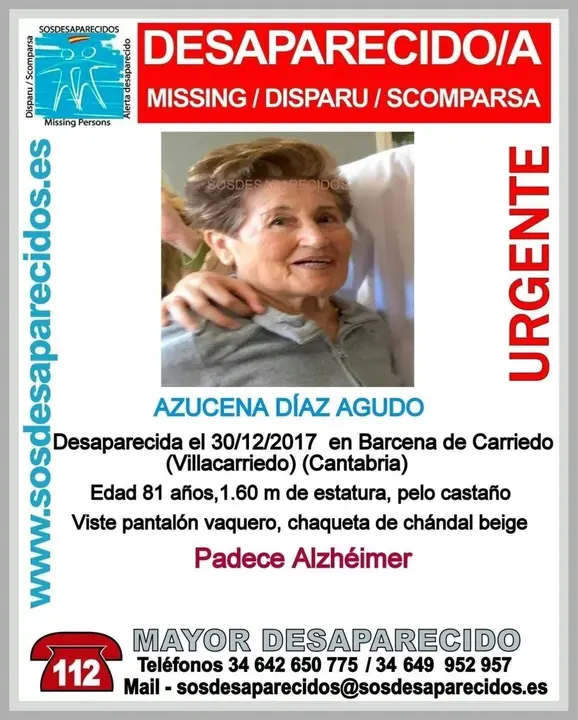Esta medianoche se ha habilitado un operativo de búsqueda para la localización de una mujer desaparecida en Bárcena de Carriedo (Villacarriedo). Tiene 81 años y padece Alzheimer.