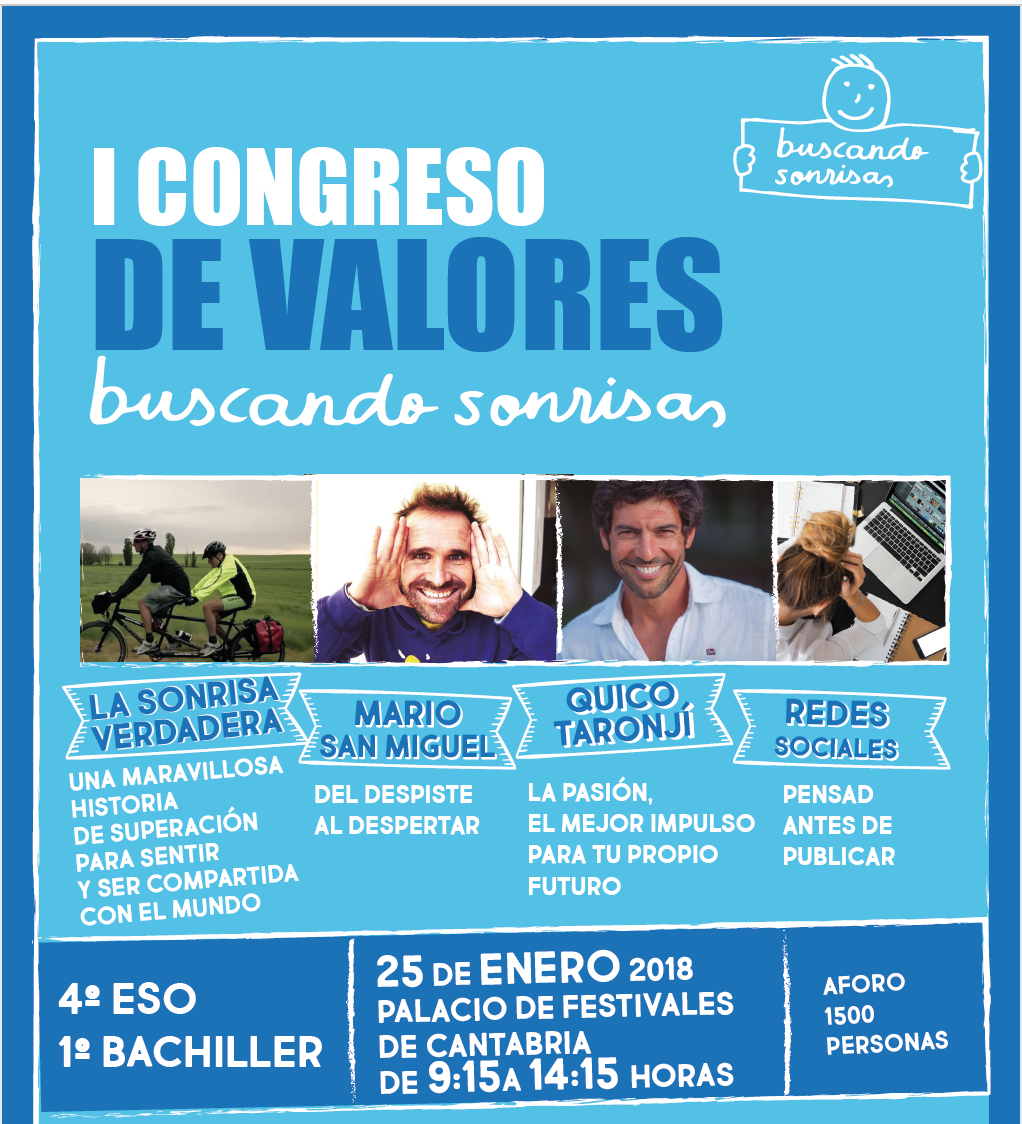 Bajo el título 'Congreso de Valores Buscando Sonrisas', la cita se alza como un proyecto innovador en Cantabria, divertido y educativo, que se celebrará en el Palacio de Festivales en Santander y en el que participarán unos 1.500 estudiantes.