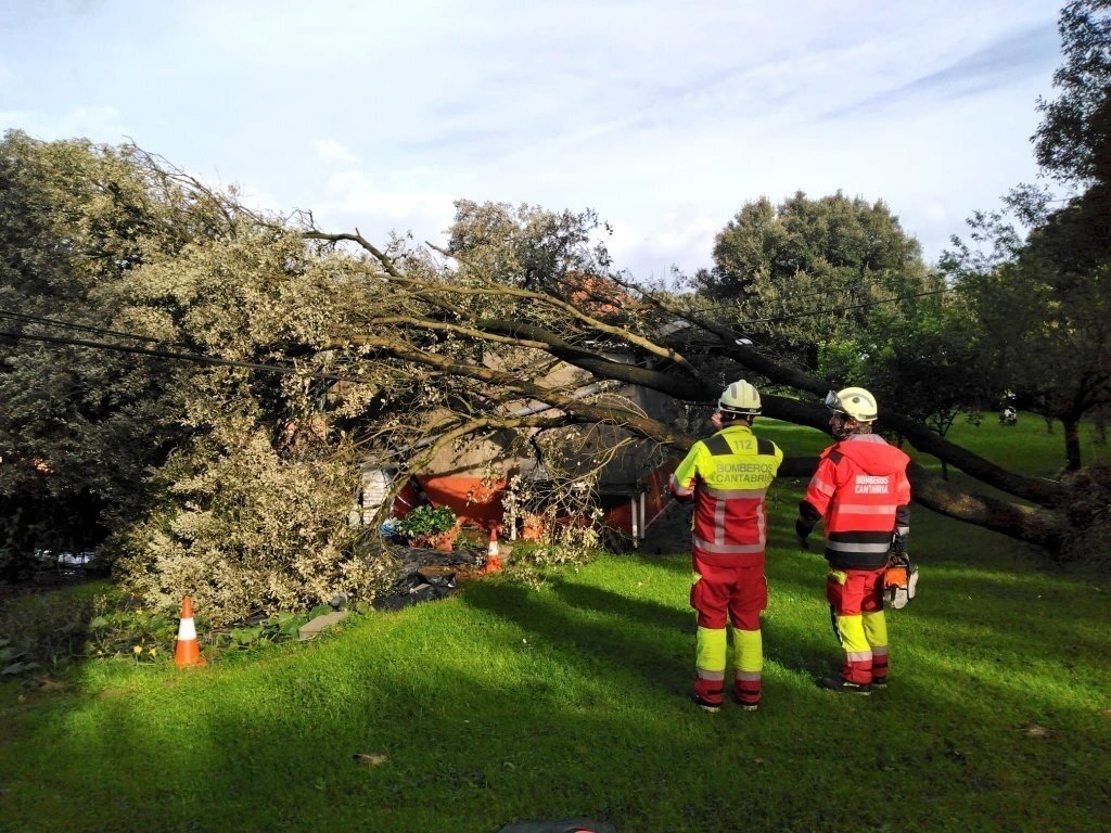 Así, por ejemplo, los Bomberos del 112 han retirado dos encinas caídas sobre cableado telefónico y el tejadillo de una casa de aperos de jardín en Arnuero y han también han tenido que sanear la cornisa de una casa deshabitada en Santoña ante el riesgo de caída del alero.