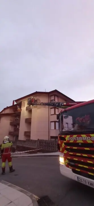 Entre otras actuaciones, los bomberos del Gobierno del parque de emergencias de Valdáliga han intervenido en la fachada de un edificio de viviendas en San Vicente de la Barquera por riesgo de caídas de placas.